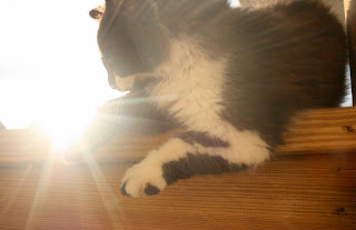 I've been bouncing back and forth between the spare bedroom (aka the junk room) and my retreat, trying to get things sorted and put in the correct locations. I'm finding that I have quite a task ahead of me. While I was shuffling from room to room, I noticed a shaft of sunlight . . .